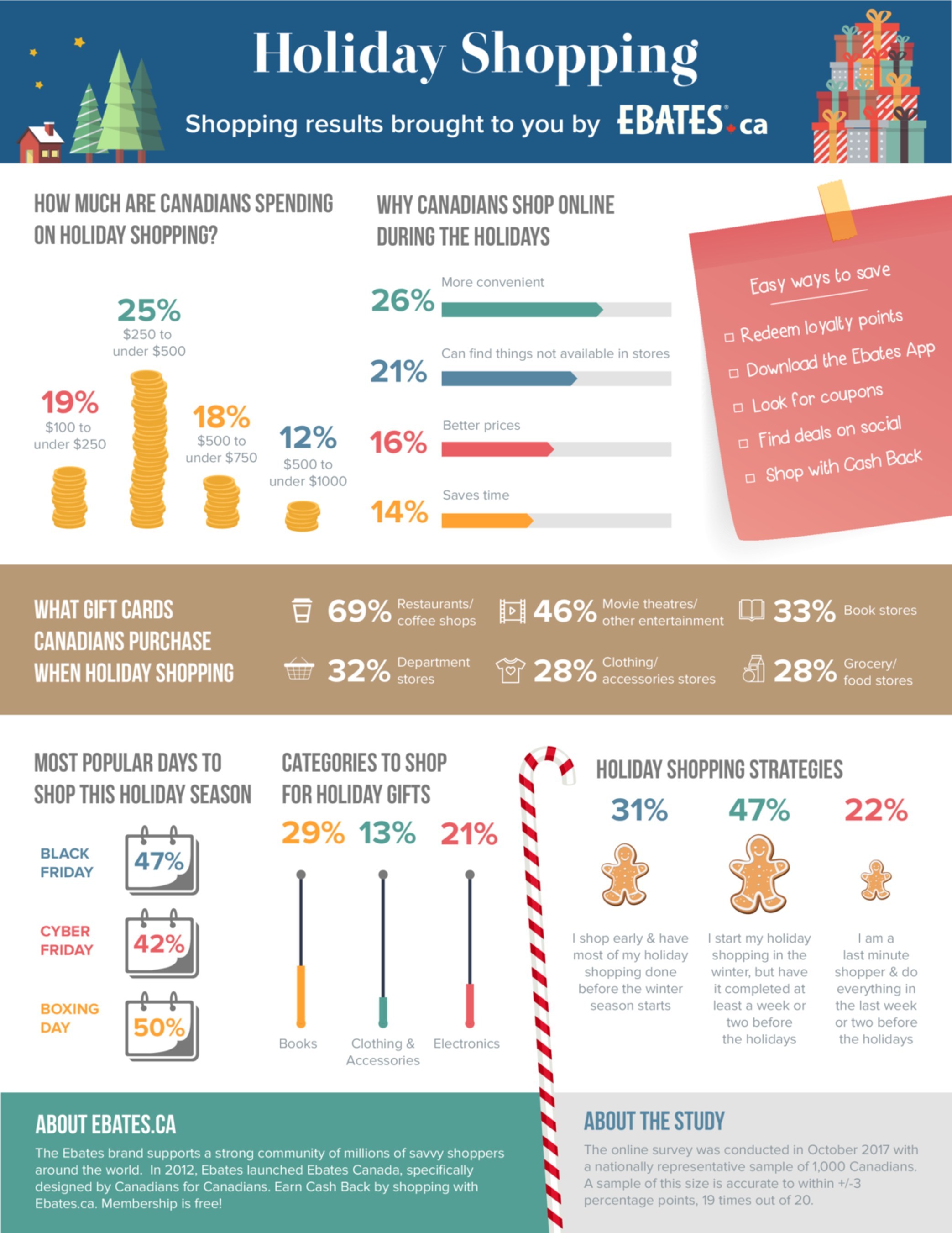 Holiday shopping is in full swing right now and Canadians plan to fully embrace it again this season, according to a recent poll from our client Ebates.ca. The overwhelming majority of us (86 per cent) will spend as much or more than last year and roughly one-third of us plan to complete our holiday shopping within the next five days, taking advantage of Black Friday and Cyber Monday savings.