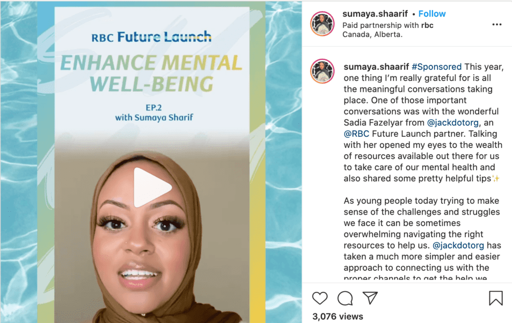 For example, BlueSky developed and executed the 2020 RBC Future Launch content creator program that served as a channel to reach youth across Canada, while providing content for RBC owned digital channels that could live throughout the year, and beyond. After extensively vetting more than 100 content creators, eight were engaged to participate in the six-month campaign. We worked with each creator to marry their unique life experiences to the respective Future Launch offerings. This authenticity supported the Future Launch messaging, which resonated with their target audience and kept them engaged.