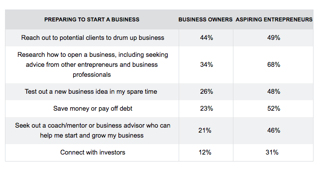 Before you decide to become an entrepreneur, here’s a chart from RBC looking at what current and aspiring business owners said are the most important steps to getting started.